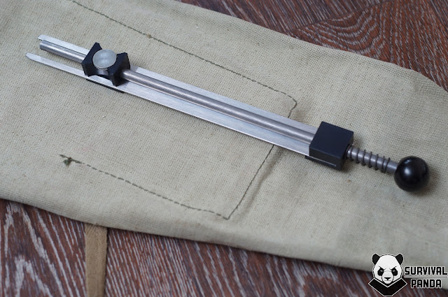 Держатель абразива регулируемый. Можно зажимать, как скошенные бланки, так и бруски с торцами 90 градусов. Единственное разочарование — ограничен минимальный размер камня, раньше такого не было и я во всю использовал компактные веневские алмазные бруски.