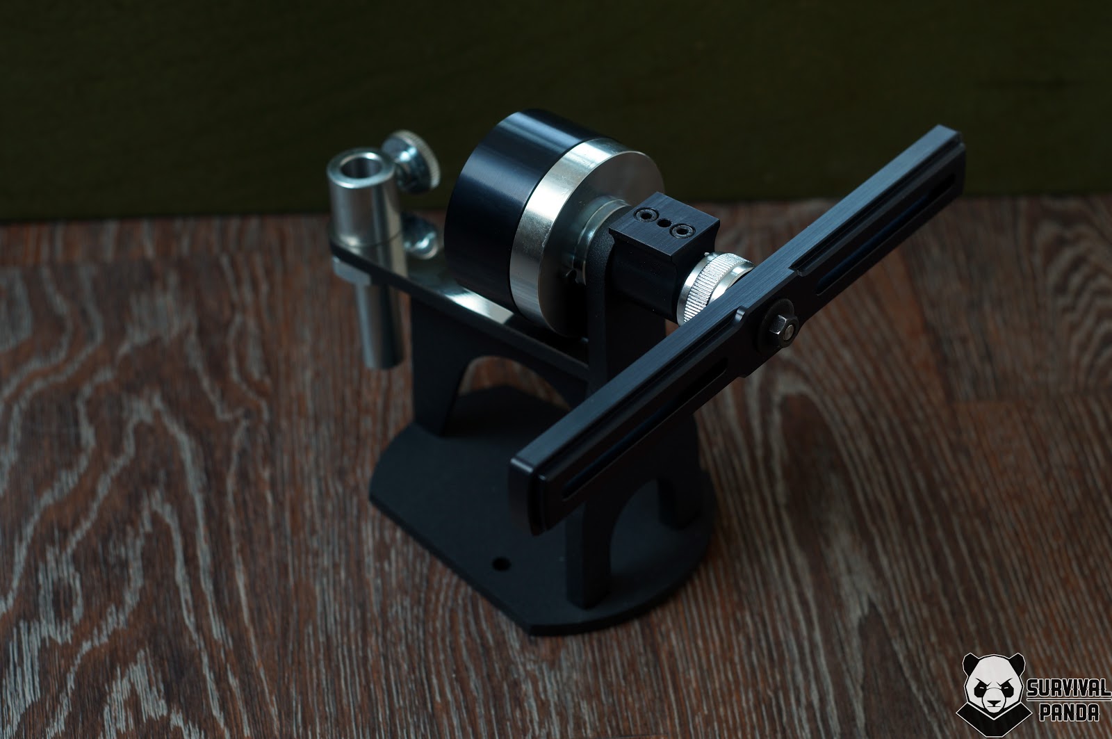 Эту же десятую дает проворот ножа на 180 градусов в зажимном узле. Такой точности за глаза хватит самом придирчивому заточнику.