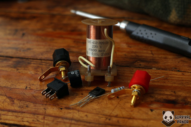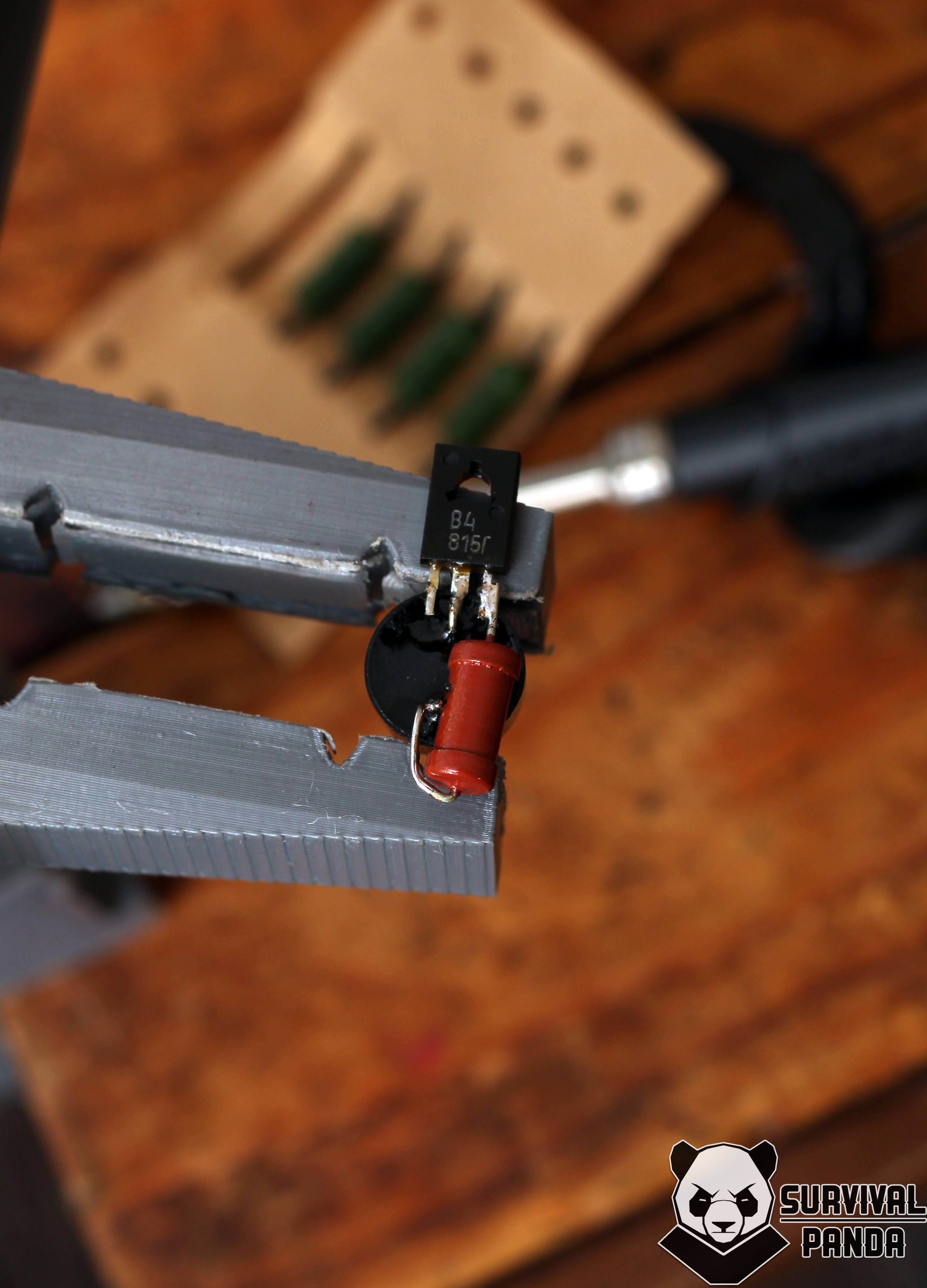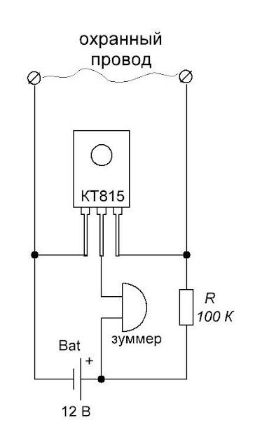 Самым важным было найти подходящую схему. Оказалось, что есть простейшая реализация на одном транзисторе кт815. Вот так выглядит схемка.