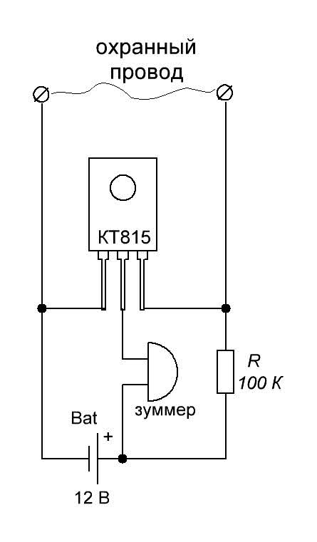 Как оказалось, завести ее можно буквально от 3х вольт — 2х батареек АА. Только нужен пятивольтовый зуммер(на 12v Тоже подойдет) — это пищалка, которая и будет являться нашим оповещателем. А также резистор следует заменить. У меня было в запасах несколько советских на 47 КОм. С ними получался тихий, но раздражающий писк. Спать под такой невозможно, при этом сам нарушитель его естественно уже не услышит.