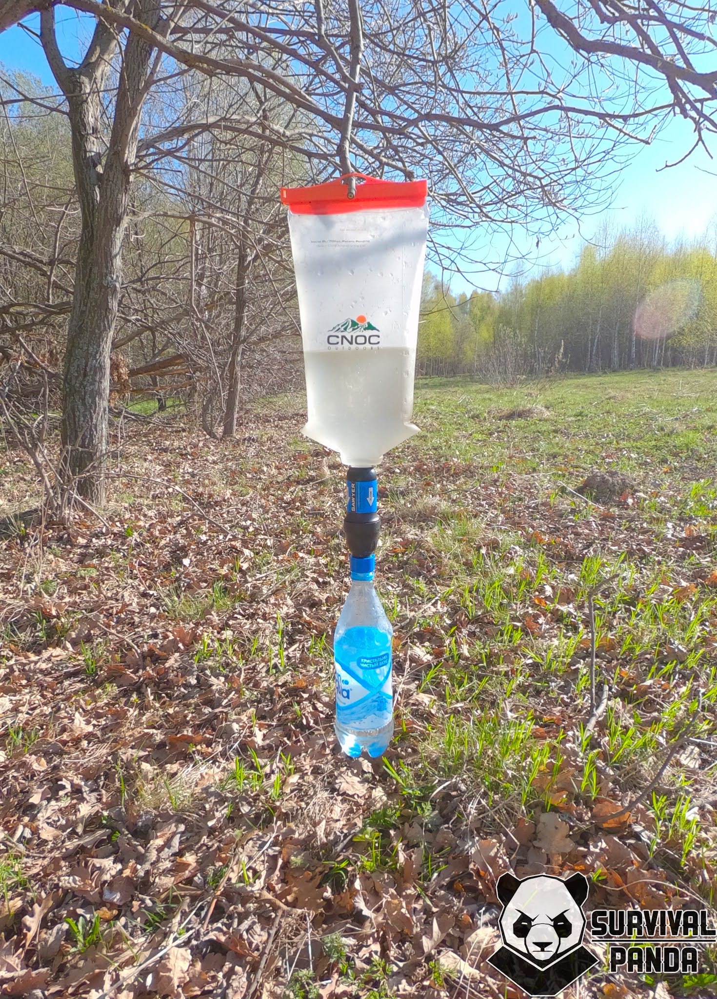Теперь про эскплуатацию. Вообще за годы походной практики идеальная фильтр система для меня выглядит так. Все части соединяются. И достаточно просто набрать исходной воды.