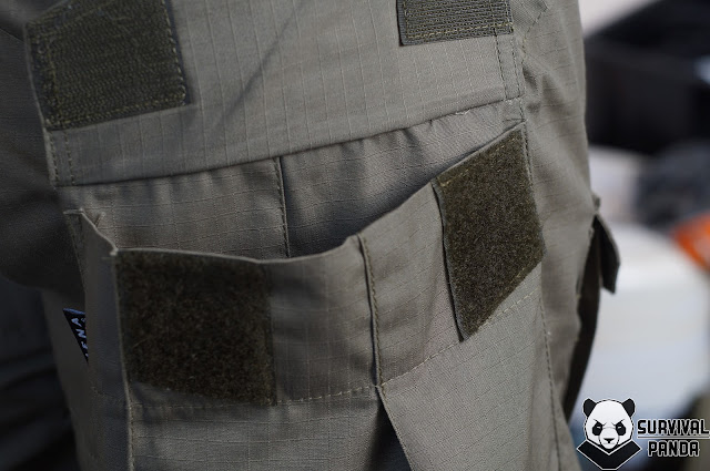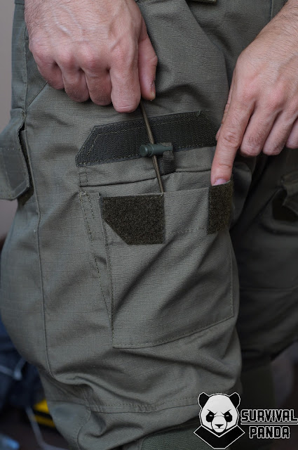 Во фронтальные карманы на бедрах выведен шоккорд регулировки высоты наколенников.