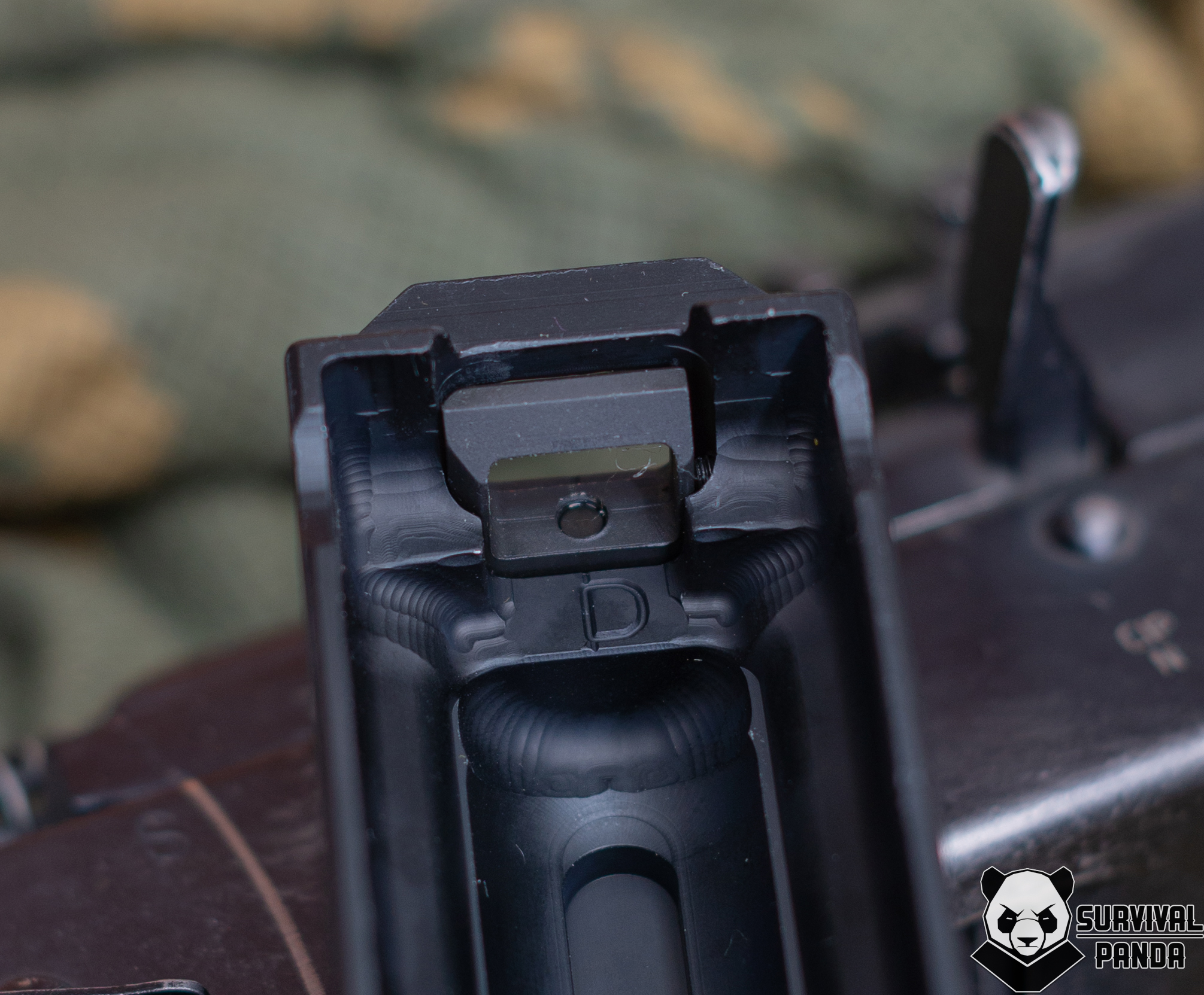 За эту рамку защелкивается штатная направляющая возвратного механизма. Затем, закручивая колесо, крышка притягивается к штоку пружины. А за счет того, что сама направляющая зафиксирована в пазах ствольной коробки — крышка прижимается к коробке. Получается жесткое соединение.