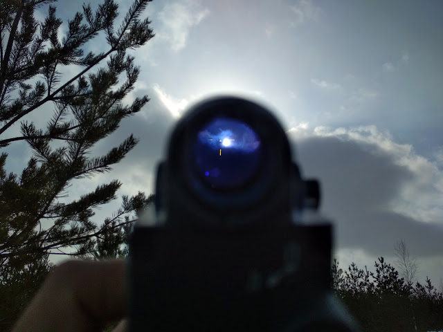 Я люблю и ненавижу этот прицел. Мне нравится регулировка яркости качелькой, мне нравится сетка и то, что их несколько.