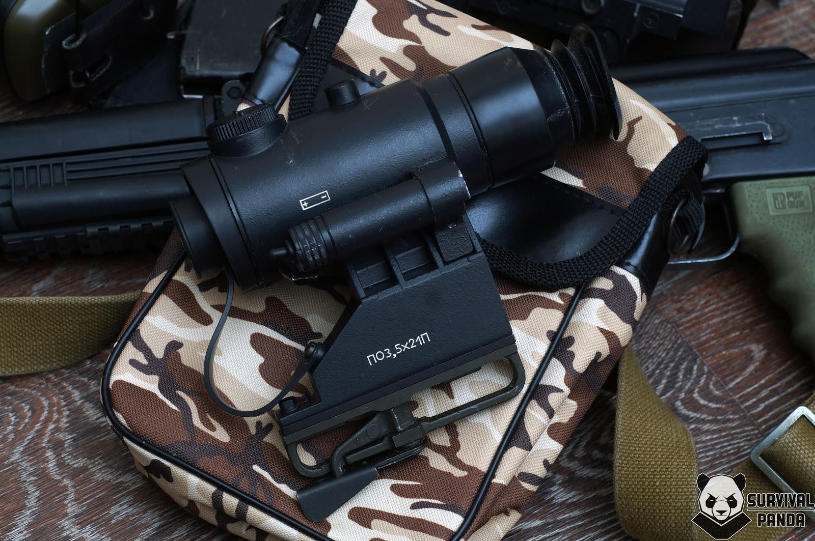 Из прицелов на боковую планку у меня есть совершенно нежизнеспособное чудо белорусского гения — по-3.5х21п.