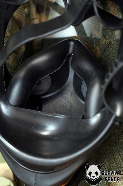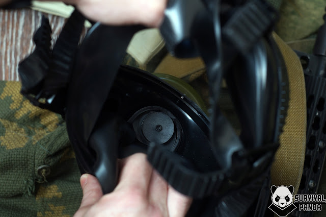 Также на фотографии видны монументальные трехщелевые пряжки для подгонки противогаза по морде лица. А еще, если у вас длинные волосы, вот этот милый валик по центру их с радостью намотает.