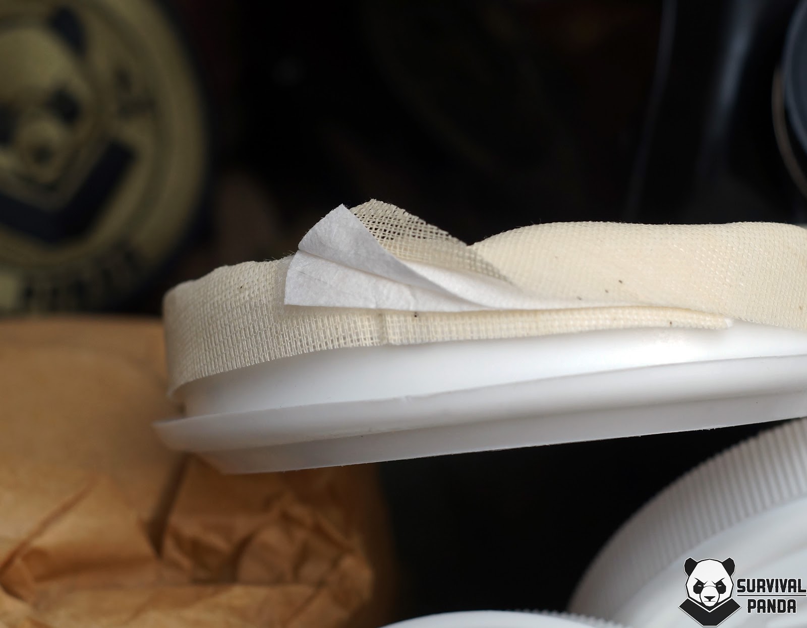Используется многослойный материал, наружные слои из крупной сетки, а внутренние — ткань ФП. Отечественный аналог HEPA. Правда, какая именно и из какого материала, я нигде не нарыл.